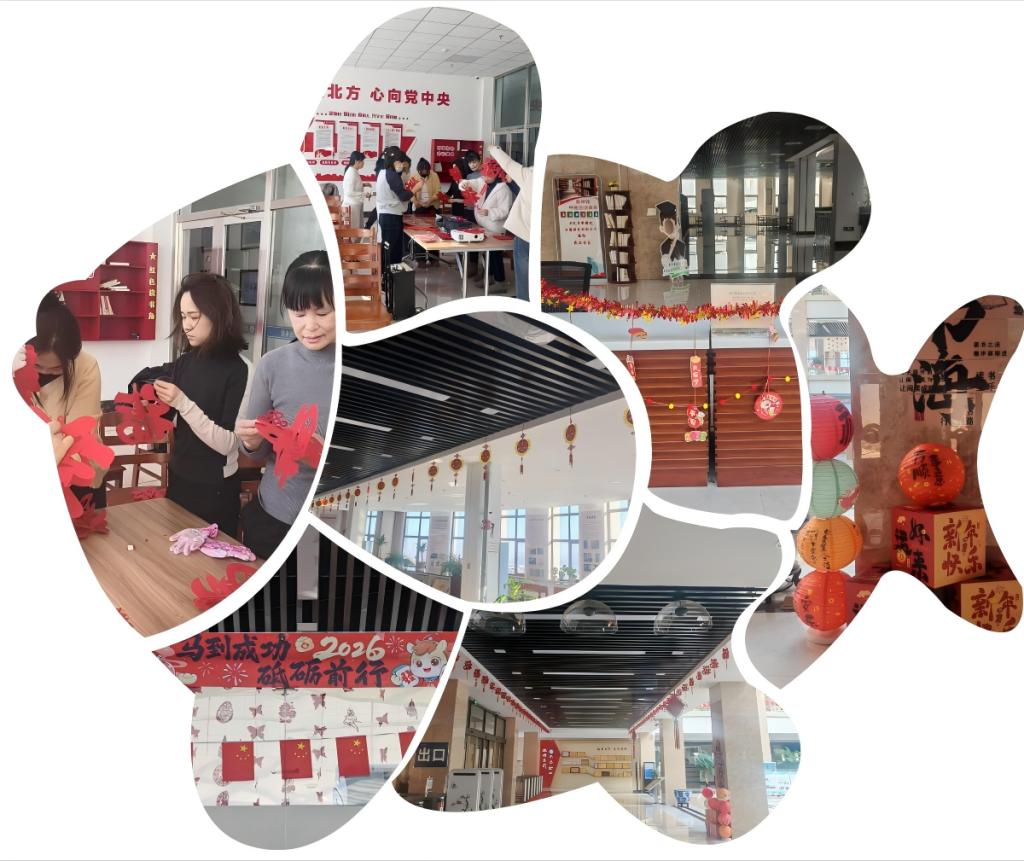 开学前夕,图书馆全面清洁整理阅览区、自习座位等区域,擦拭书架、规整书刊、调试设备;制作悬挂福字串灯、中国结、纸灯笼,布置“马到成功 砥砺前行”等条幅,营造中国传统节日的喜庆氛围,以崭新面貌等候师生归来。