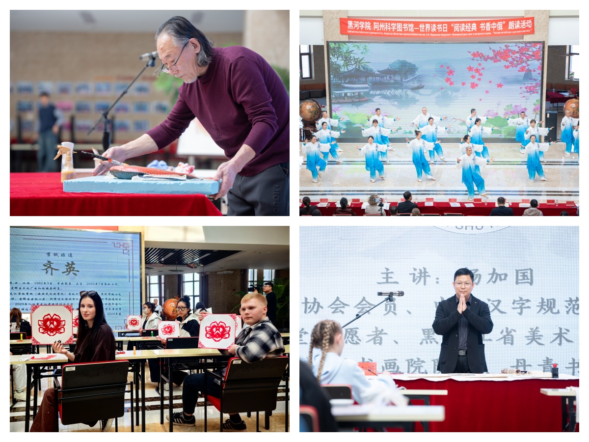 在热烈的氛围中,经典传承讲坛正式开讲,非遗剪纸、书法雅集、鱼拓艺术、太极拳展演等文化体验活动依次开展,中俄师生近距离感受中华传统文化魅力,共叙友谊。